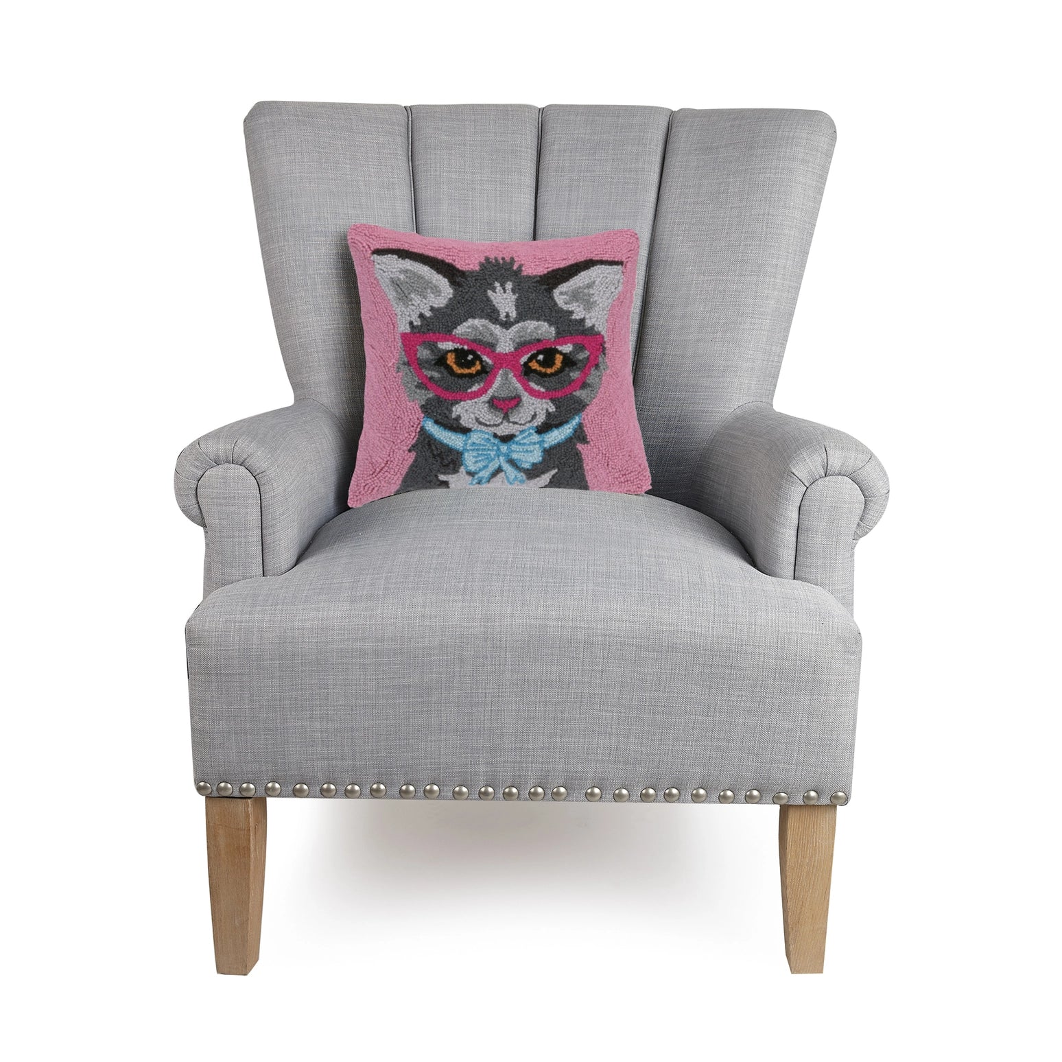 Add a touch of whimsy to your decor with this charming 16" square pillow featuring a stylish cat wearing pink glasses and a bow tie. The 100% wool face adds texture and detail, while the soft polyester velvet back ensures comfort. With a zipper closure and removable polyester insert, it’s easy to care for and perfect for cat lovers looking to liven up any space!