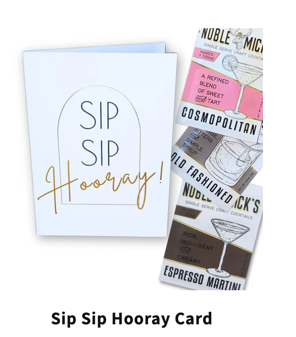 A "Cocktail and Card" Now for the 1st time ever you can send your friends and family a card and a cocktail at the same time! These premium greeting cards are made from heavy card stock and feature gold foiling accents. Each card holds a single serve craft cocktail inside. When opened there is one of the three below featured cocktails. When the cocktail is peeled off there is a fun saying printed underneath. The envelopes are peel and stick closure and have gold foil inside.