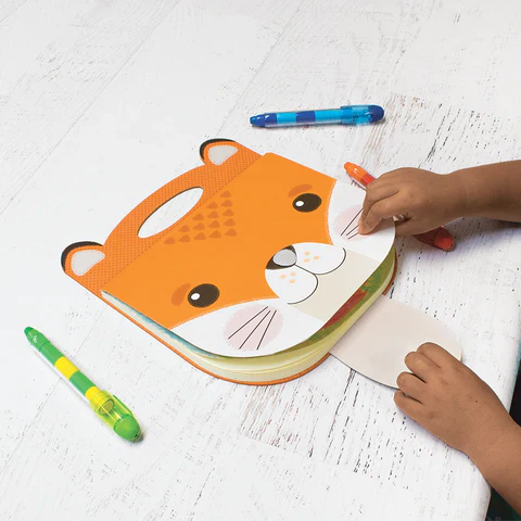 Take this friendly little Fox sketchbook anywhere you create art. This delightful animal sketchbook is perfect for creating art on-the-move. Let the Fox Carry Along Sketchbook to be your new friend in your drawing and coloring adventure. With carry handles perfect for little hands, and cute clasp noses, you can create the next masterpiece or doodle wherever you are and keep your artwork safe too!