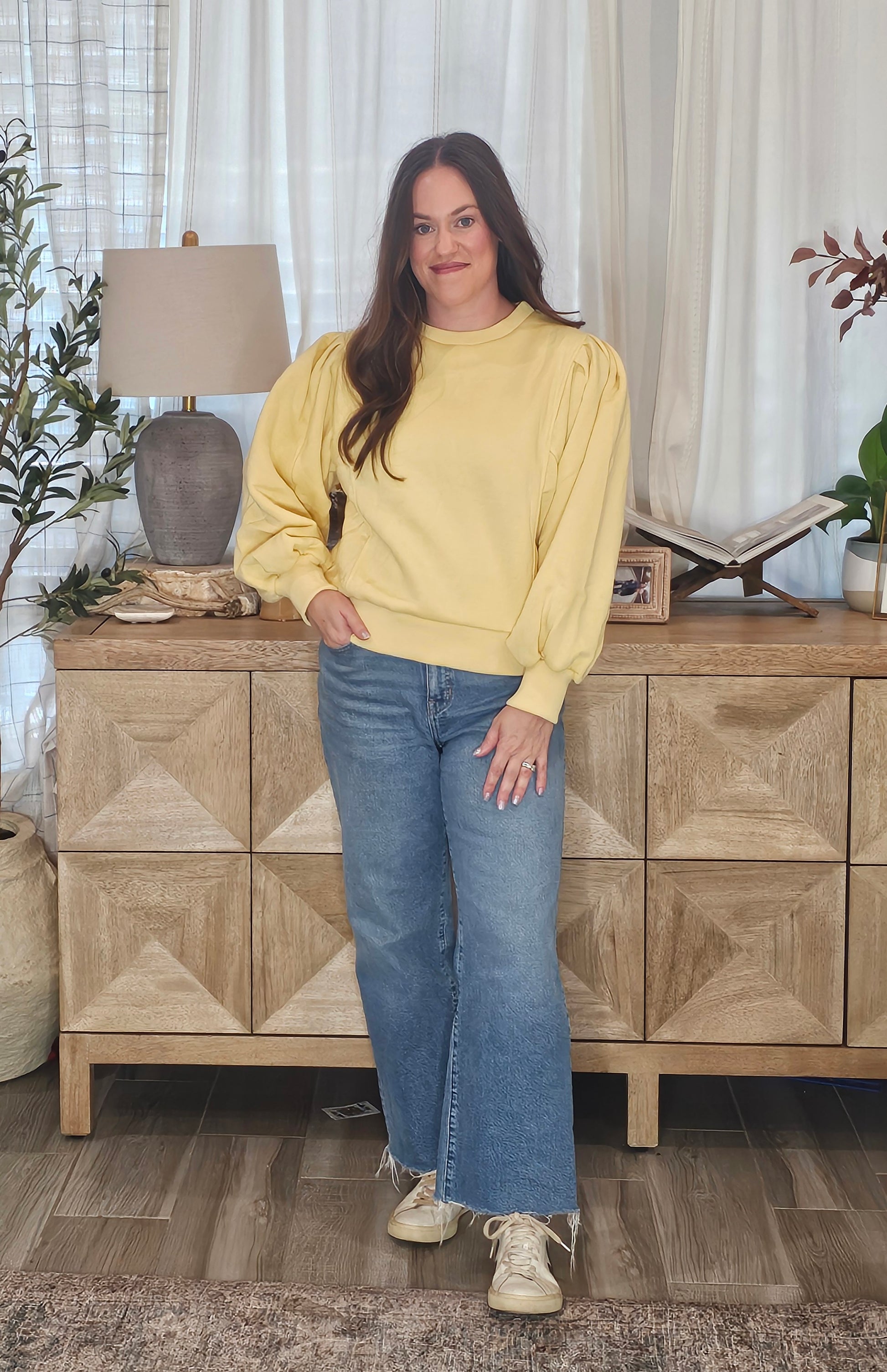 This isn't your average sweatshirt! The distinctive sleeve detail elevates this cozy essential into a fashion-forward piece you'll reach for again and again. Pair it with jeans for a relaxed look or dress it up with your favorite accessories.